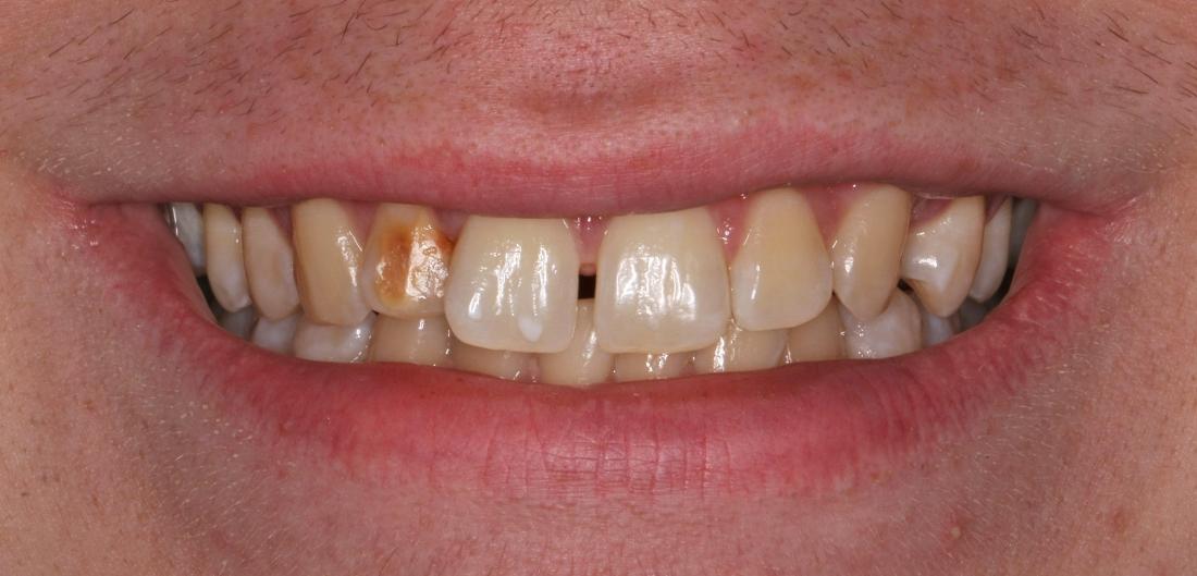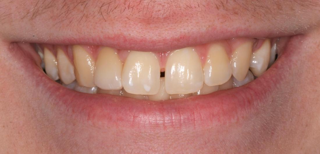 We treated him with a single veneer using meticulous color and characterization matching so it blended in seamlessly with his other teeth. Can you tell which one is the veneer by just looking at the "after" photo???